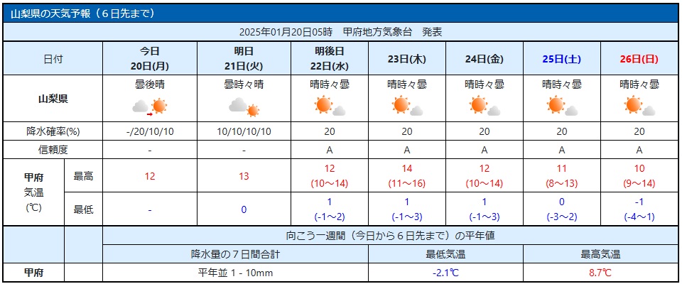 今後強い寒気が流れ込むと大雪となる可能性があります。山梨県の農業技術課から「農作物の当面の管理について」が出されていますので、参考にしてください。