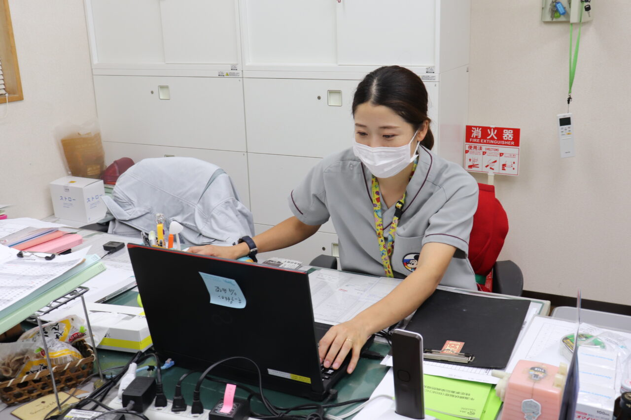 まだ仕事は終わりません。採血した血液の検査や、器具の片づけ、汚れたツナギの洗濯などをしながら、カルテを入力して業務終了です。