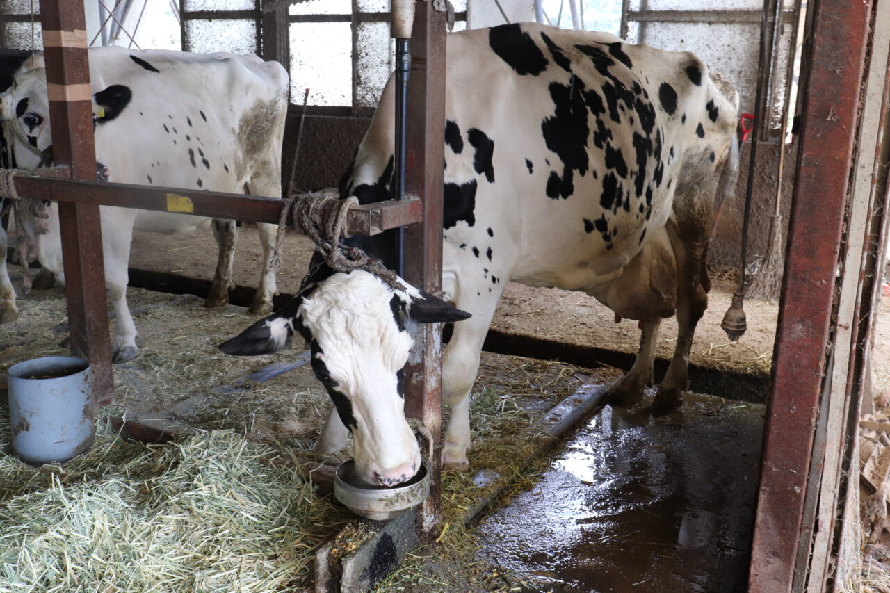 10:30 3件目。今度は酪農家さん。乳房炎の乳牛1頭と、お産疲れ(乳熱+肺炎)の乳牛に点滴。