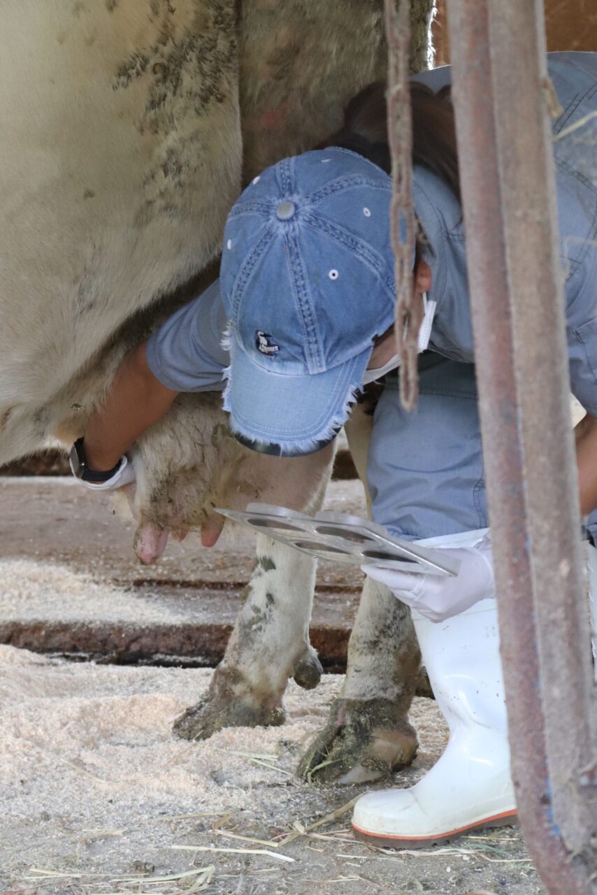 10:50 4件目。早産で死産してしまった母牛の診察。乳が出ないと飼い続けることはできません。