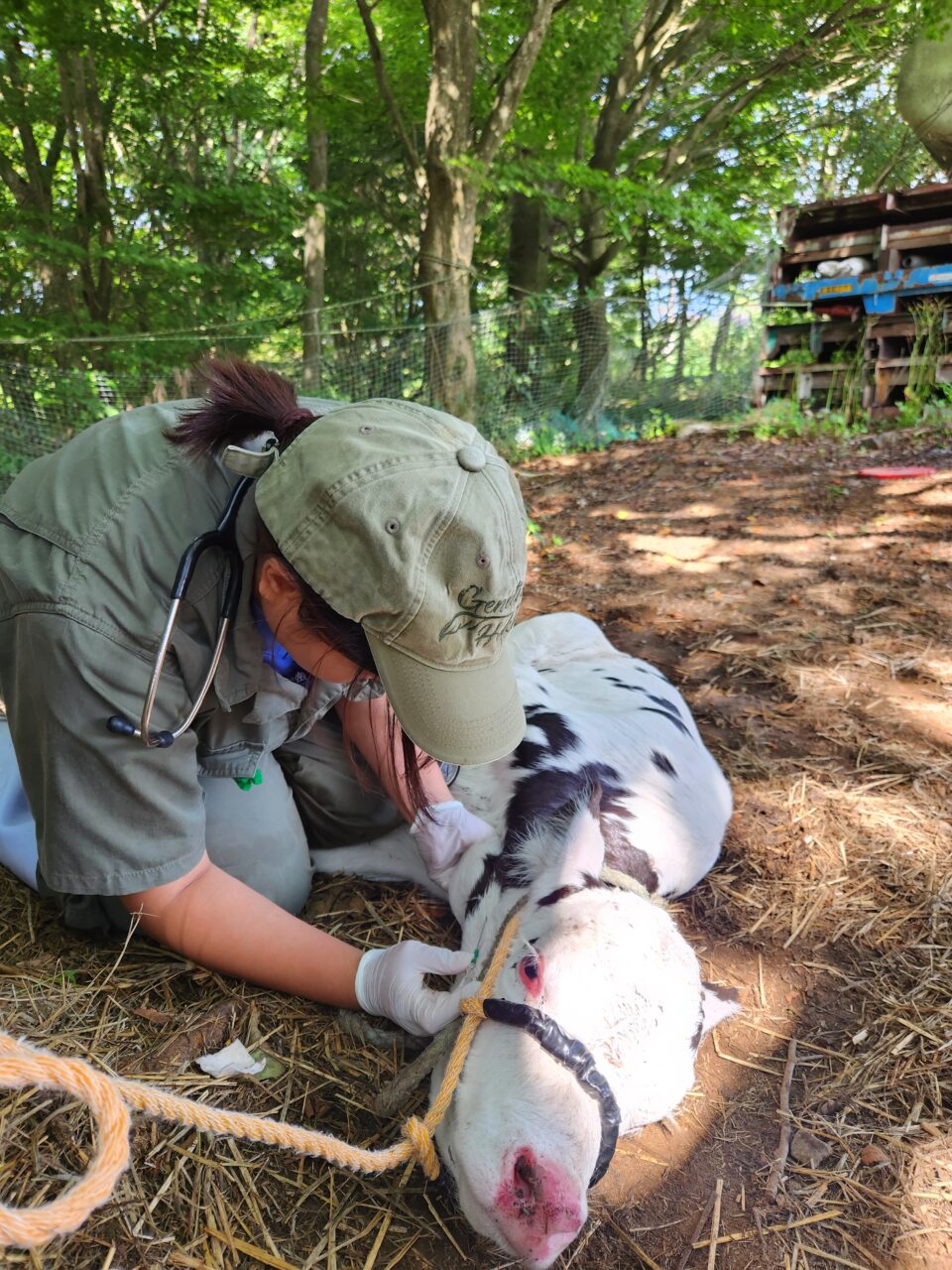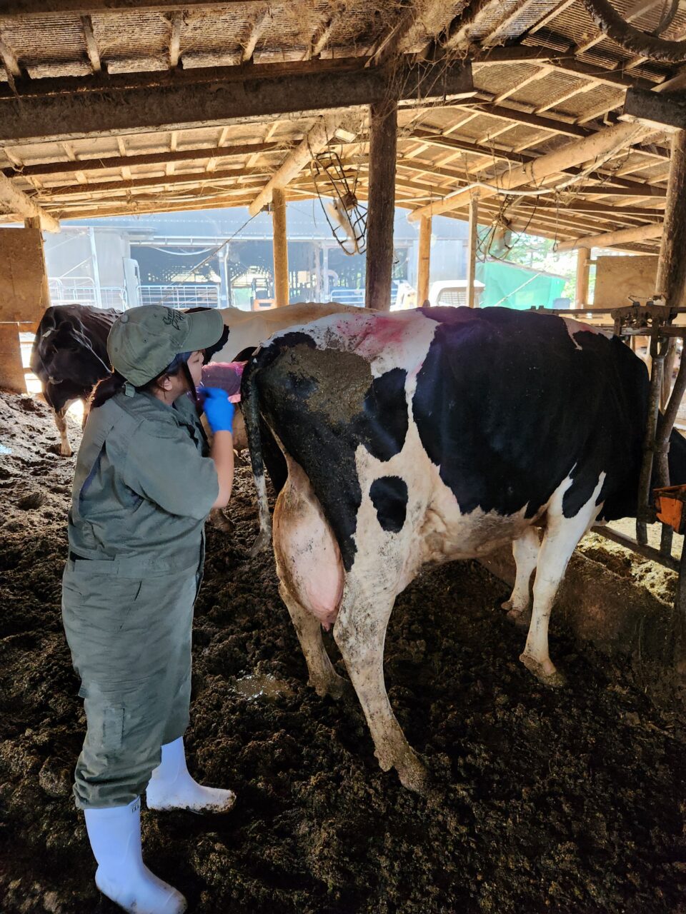 今回は富士ヶ嶺連絡所で受け入れて、NOSAI獣医師の往診に同行し山梨県の畜産を見てもらいながら繫殖検診や注射の準備を行いました。