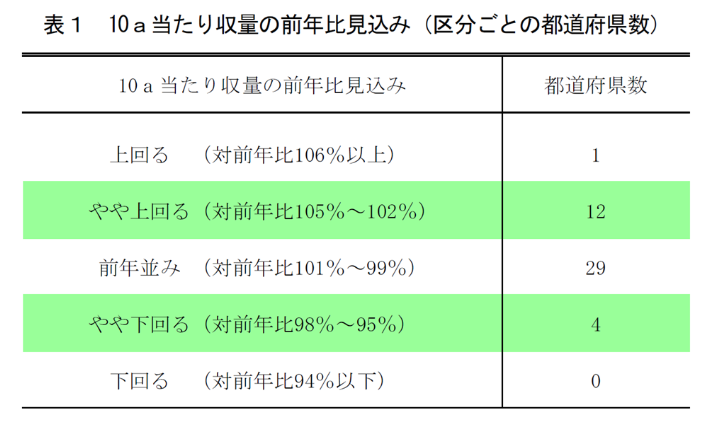 令和7年産の水稲は、おおむね順調に生育しており、農林水産省が公表している山梨県の10アール当たり収量は、前年を「やや上回る」となっています。(対前年比105%~102%)