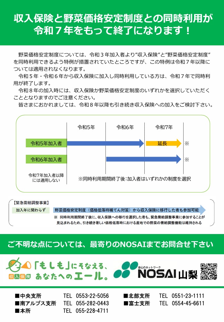 ※令和6年契約から初めて収入保険に加入する方は、2年間に限り野菜価格安定制度との同時加入が可能です。