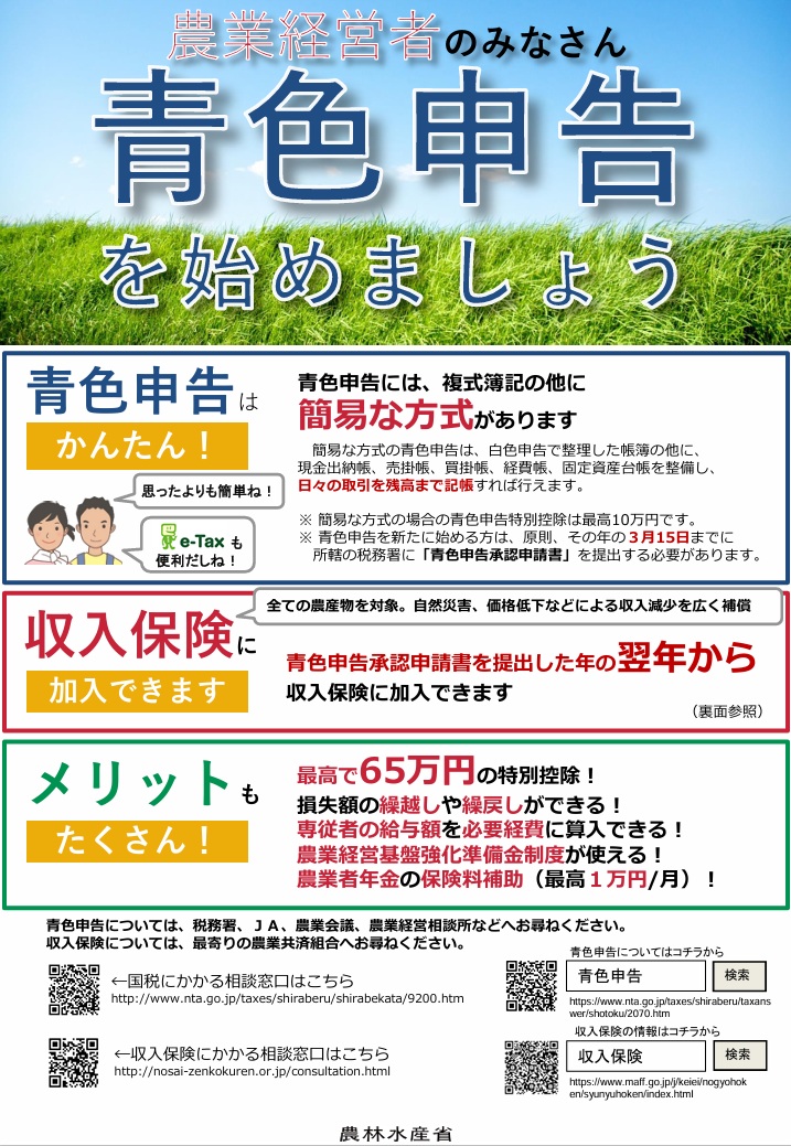 収入保険制度についての詳しい内容は農林水産省HPをご覧ください。