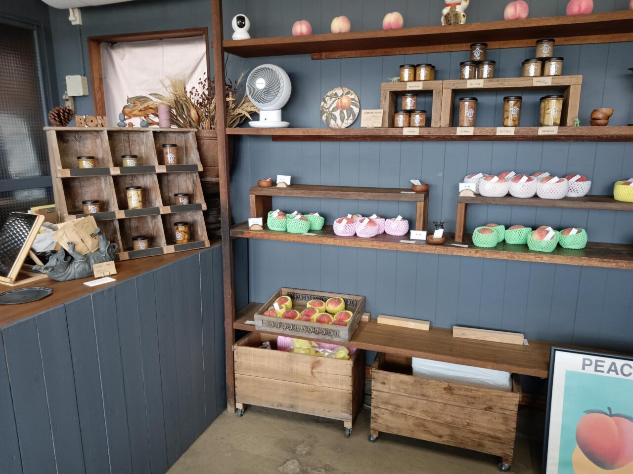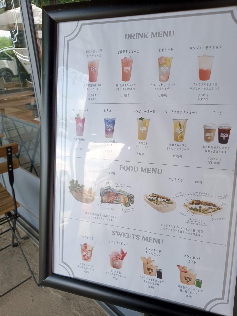 笛吹市一宮町末木の国道20号沿いにあるBON一宮は、町内にある大北農園さんのテイクアウト&直売ショップです。旬の桃はもちろん、桃を使ったオリジナルドリンクやスイーツ、軽食を販売しています。