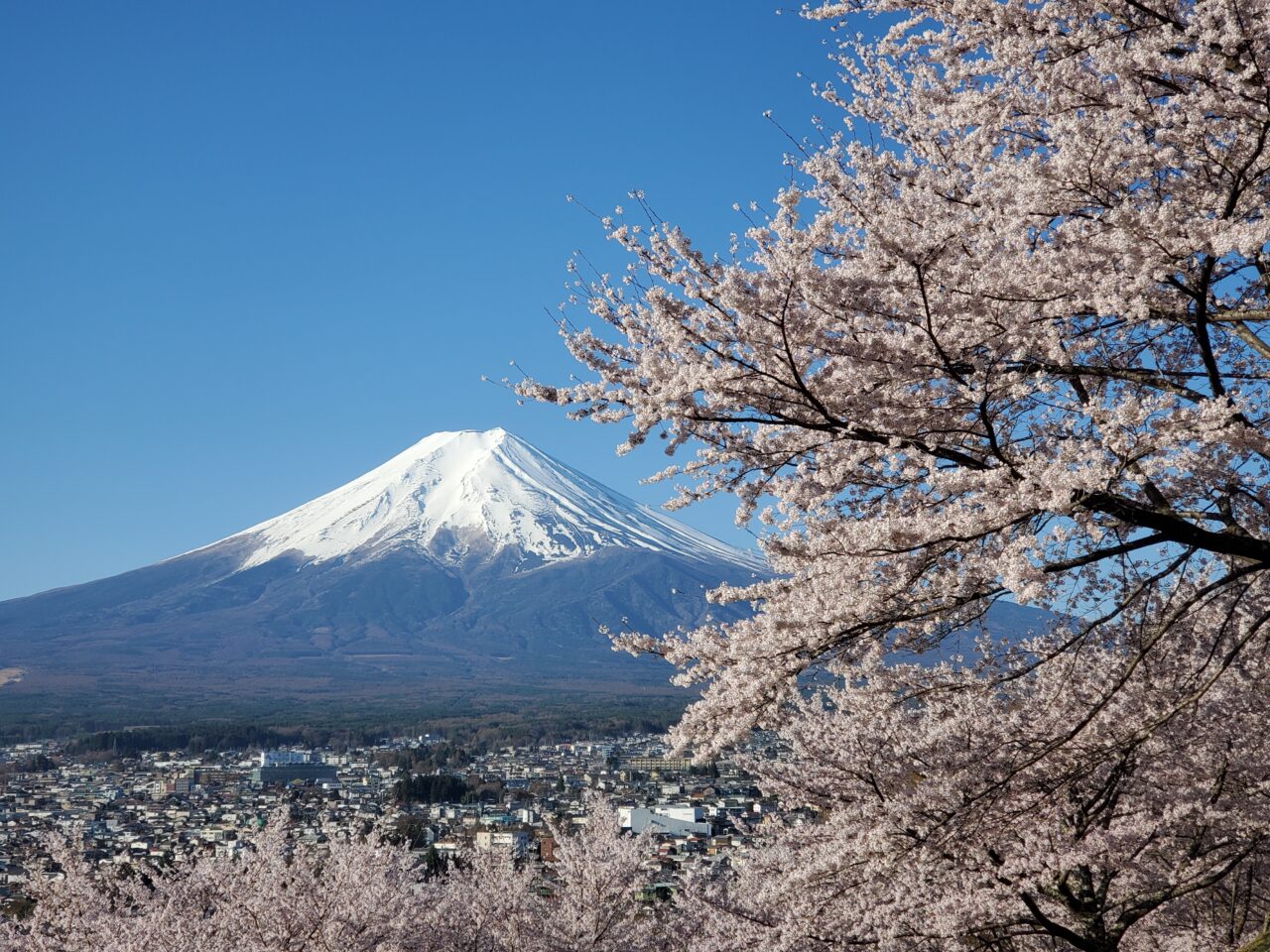 近年のオーバーツーリズムの影響により今年は「新倉山浅間公園桜まつり」は開催されないとのこと。それでも公園からの景観は素晴らしいので、見に行かれる方は公共交通機関のご利用とともにマナー遵守の徹底をお願いいたします。