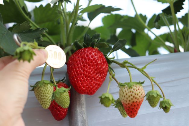 こちらのハウスでは、7種類のイチゴを栽培していて、イチゴ狩りでは4~5種類を味わうことができるそうです。