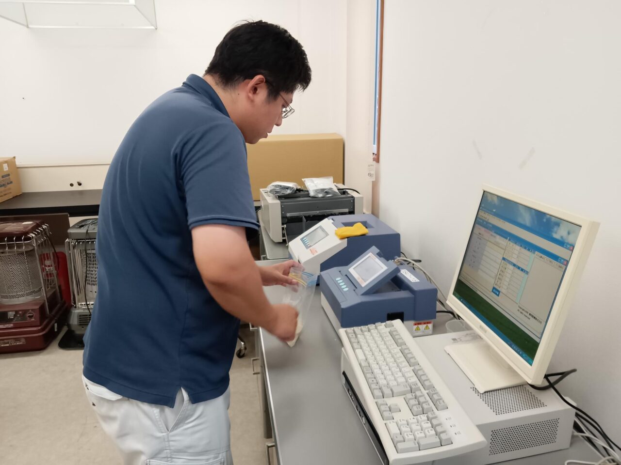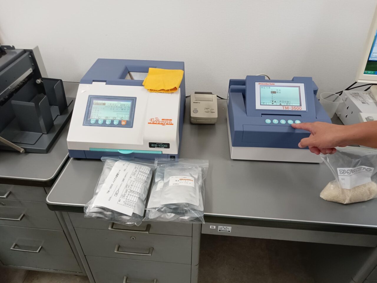 8月25日には点検が終わった食味計と穀粒判別器を北部支所と富士支所に設置。正常に動作するかどうかをテストしました。