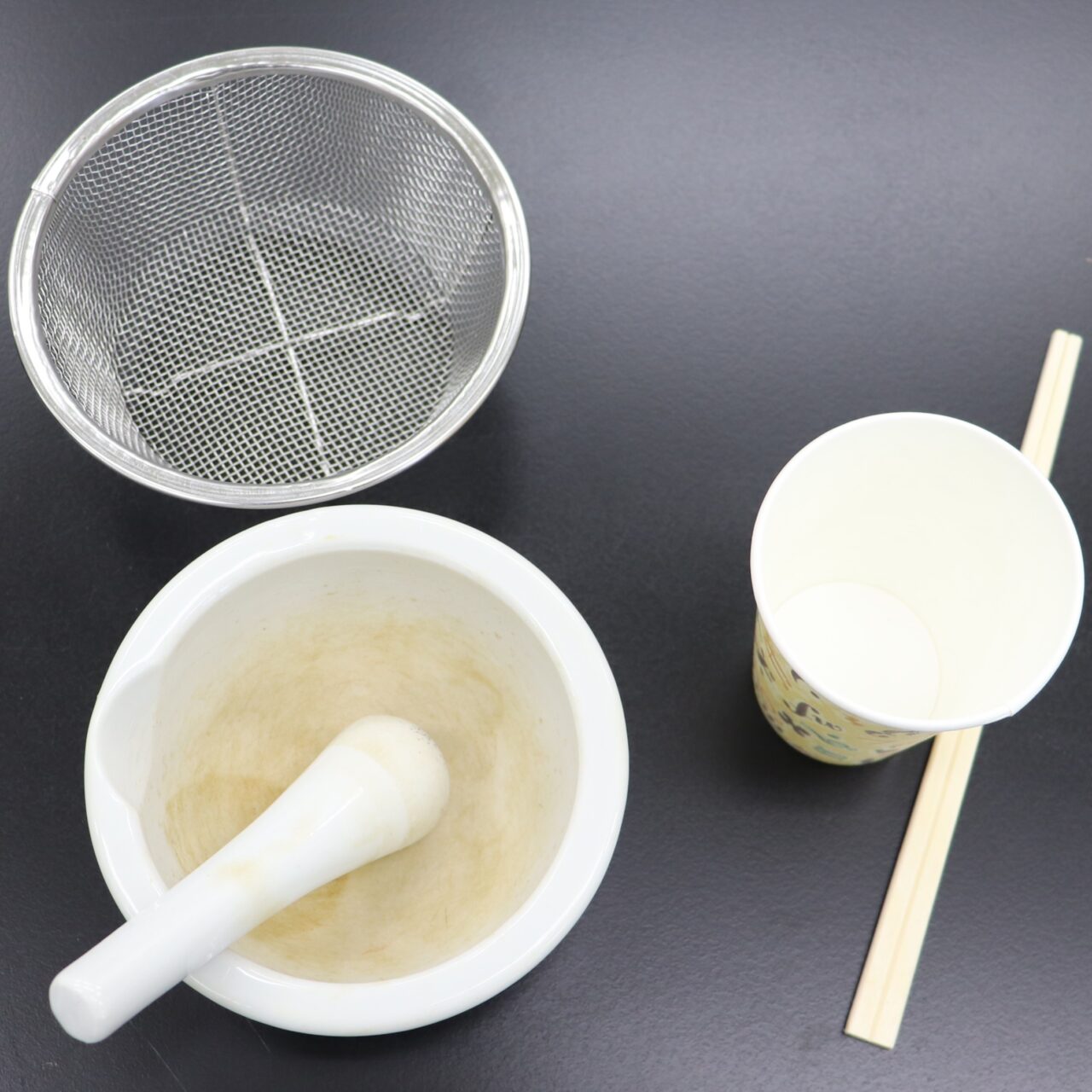※ネットに出ていたのはすり鉢と軟式野球ボールでしたが、すりこぎで代用