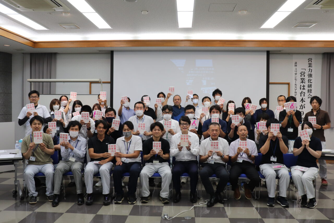 収入保険の山梨県目標1,600戸加入を目指して、営業力を高めるべく7/26と9/15の2班に分かれて開催、今回の参加者は38名でした。講師には「営業は台本が9割」の著者であるホームメンターズ株式会社 代表取締役 加賀田裕之先生に来ていただきました。