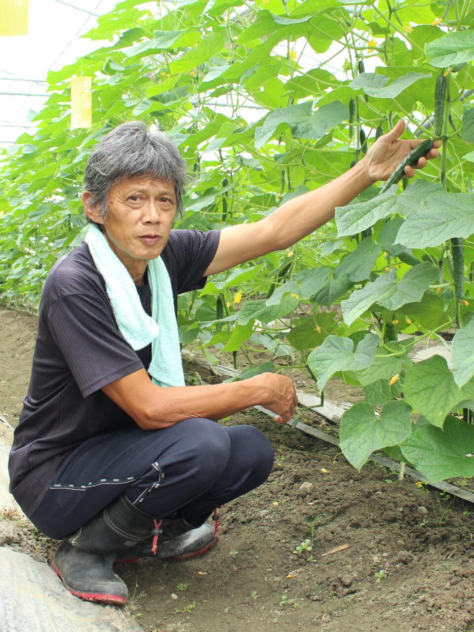 パイプハウスで夏秋キュウリ、冬には加温せずに作付けできる葉物野菜を栽培。園芸施設共済には父の代から加入している。
